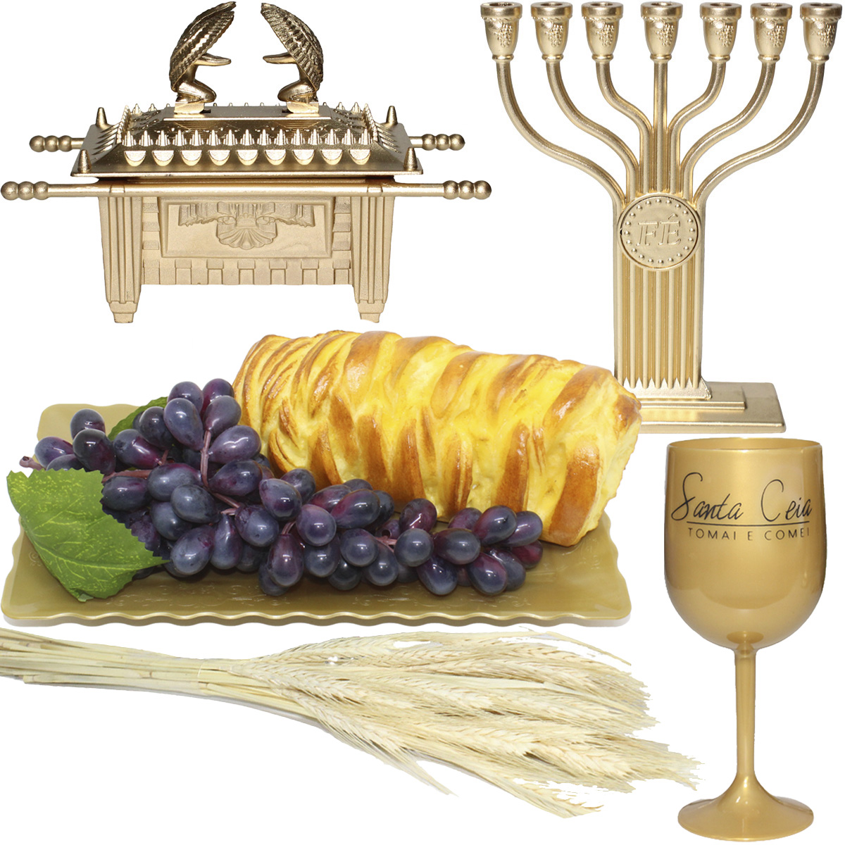 - 01 Arca da Aliança Pequena: 10cm comprimento x 9cm altura x 6,5cm largura.