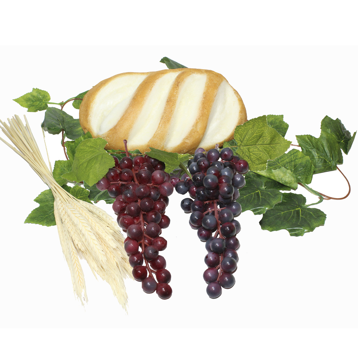 - 02 Cachos de uvas artificiais, em plástico (tipo silicone), com 24cm de comprimento.